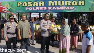 Polres Kampar bersama Bulog menyelenggarakan program pasar murah beras sebagai upaya menjaga stabilitas harga pangan. Sebanyak 4 ton komoditas tersebut berhasil didistribusikan dan langsung diserbu warga.