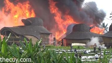 Api kemudian dengan cepat menjalar ke bangunan-bangunan lain di sekitar. Faktor angin yang cukup kencang ditambah konstruksi bangunan yang mayoritas menggunakan material kayu, bambu, serta jerami turut mempercepat penyebaran api.
