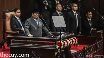 Diketahui, Prabowo hadir dalam Sidang Tahunan MPR dengan memakai pakaian sipil lengkap (PSL), berupa setelan jas abu-abu dan peci hitam.