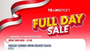 Transmart kembali menyelenggarakan program belanja hemat Full Day Sale pada hari Minggu, tanggal 17 Agustus 2025. Pelanggan dapat menikmati diskon besar-besaran mulai saat toko buka hingga pukul 22.00 WIB, terutama untuk berbagai produk elektronik pilihan, salah satunya adalah mesin cuci front load dengan kapasitas 7 kg.