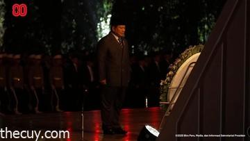 “Warga negara, mari kita bersemayam sejenak untuk merenungkan jiwa dan perjuangan para pahlawan kita, mereka yang telah berkorban demi kemerdekaan, kedaulatan, dan maruah bangsa Indonesia. Mulailah mengheningkan cipta,” ujar Prabowo.
