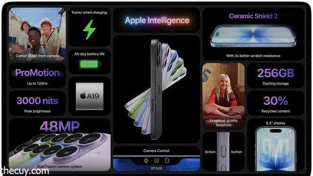 Untuk model Pro dan Pro Max, Apple memasang chip A19 Pro yang lebih kencang, dengan tiga kamera 48 MP, serta fitur video profesional seperti ProRes RAW dan Apple Log 2. Spesifikasi ini menunjukkan upaya Apple dalam memenuhi kebutuhan kreator konten profesional yang memerlukan alat mobile dengan daya saat peralatan studio.