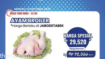 Transmart Full Day Sale menawarkan berbagai diskon menarik untuk kebutuhan sehari-hari. Acara ini berlangsung pada Minggu, 12 Oktober 2025, hingga pukul 22.00 WIB. Pelanggan dapat menikmati penawaran spesial untuk ayam broiler, dimulai dari Rp 29.000 per ekor.