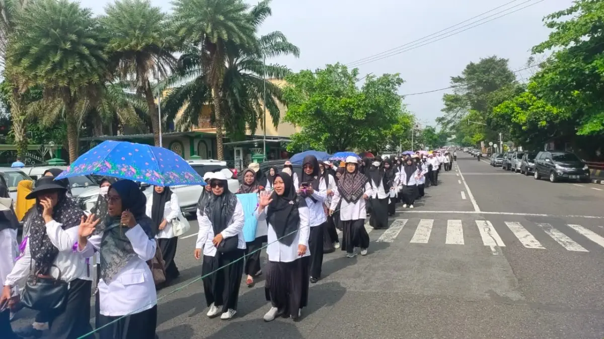 Ribuan pendidik dan tenaga pendidikan di bawah naungan Kementerian Agama Kabupaten Ciamis melakukan aksi damai guna minta keadilan di depan Gedung DPRD Ciamis, Selasa (21/10/2025). Kehadiran massal ini menarik perhatian Kepala Kantor Kemenag Ciamis, Asep Lukman Hakim, yang mengakui hak warga untuk mengungkapkan aspirasi.