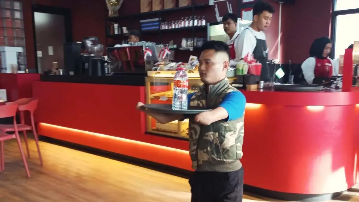 Di sebuah kedai kopi di Tasikmalaya, Wahyu Fajar Mukti (31) berdiri dengan penuh konsentrasi, membagi tubuhnya agar tetap seimbang di balik meja racikan. Telapak tangannya yang tidak memiliki jari-jari terlihat cekatan saat mengangkat nampan berisi minuman. Pada hari itu, ia sedang menjalani uji coba kerja—sebuah kesempatan langka yang jarang datang dalam hidupnya.